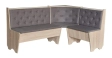 -Куток, який є універсальним і можна зібрати як правий або лівий. М'яка оббивка може бути: міцний шкірозамінник або приємна на дотик тканина. Під сидінням є простора ніша для зберігання.